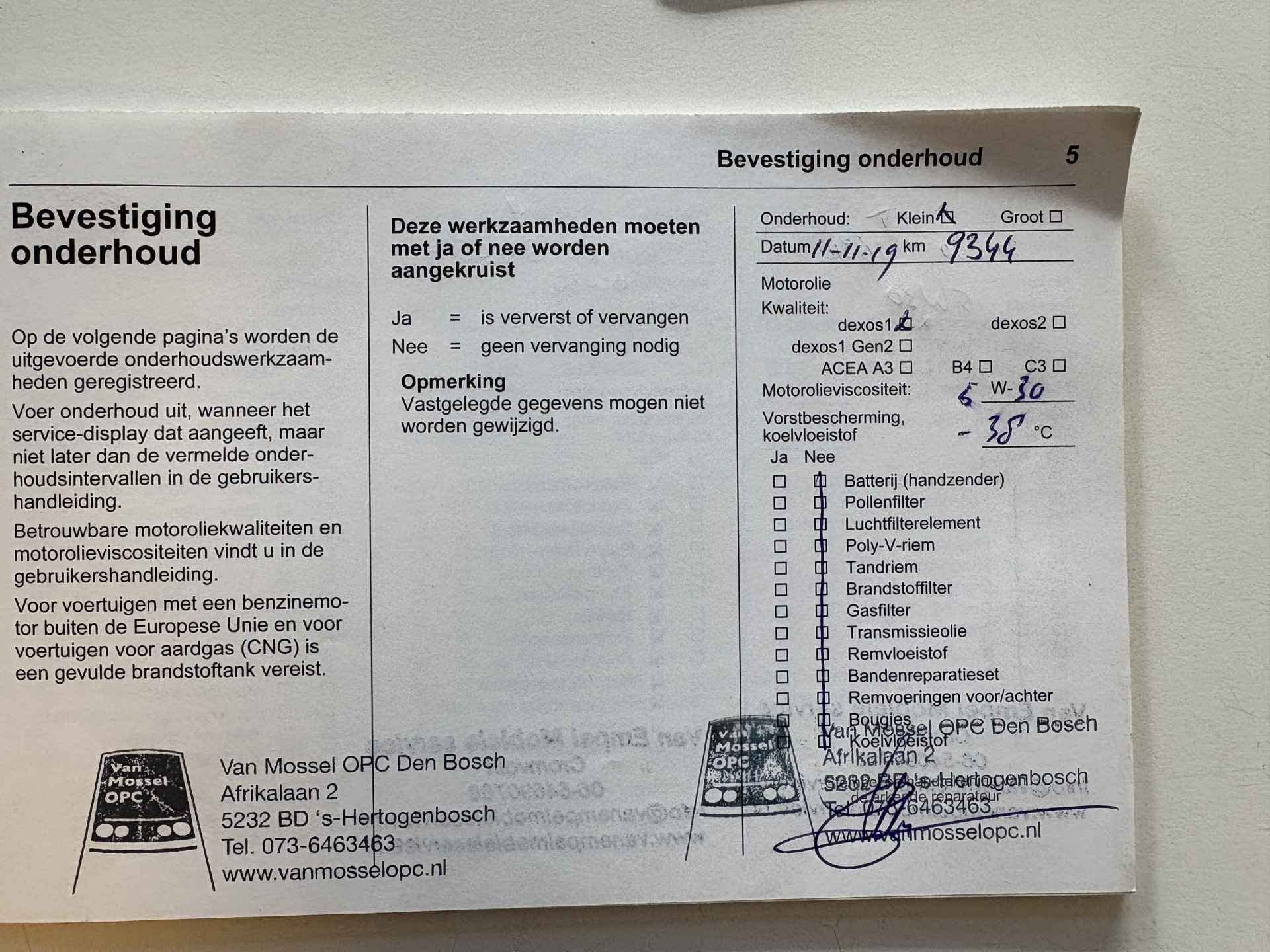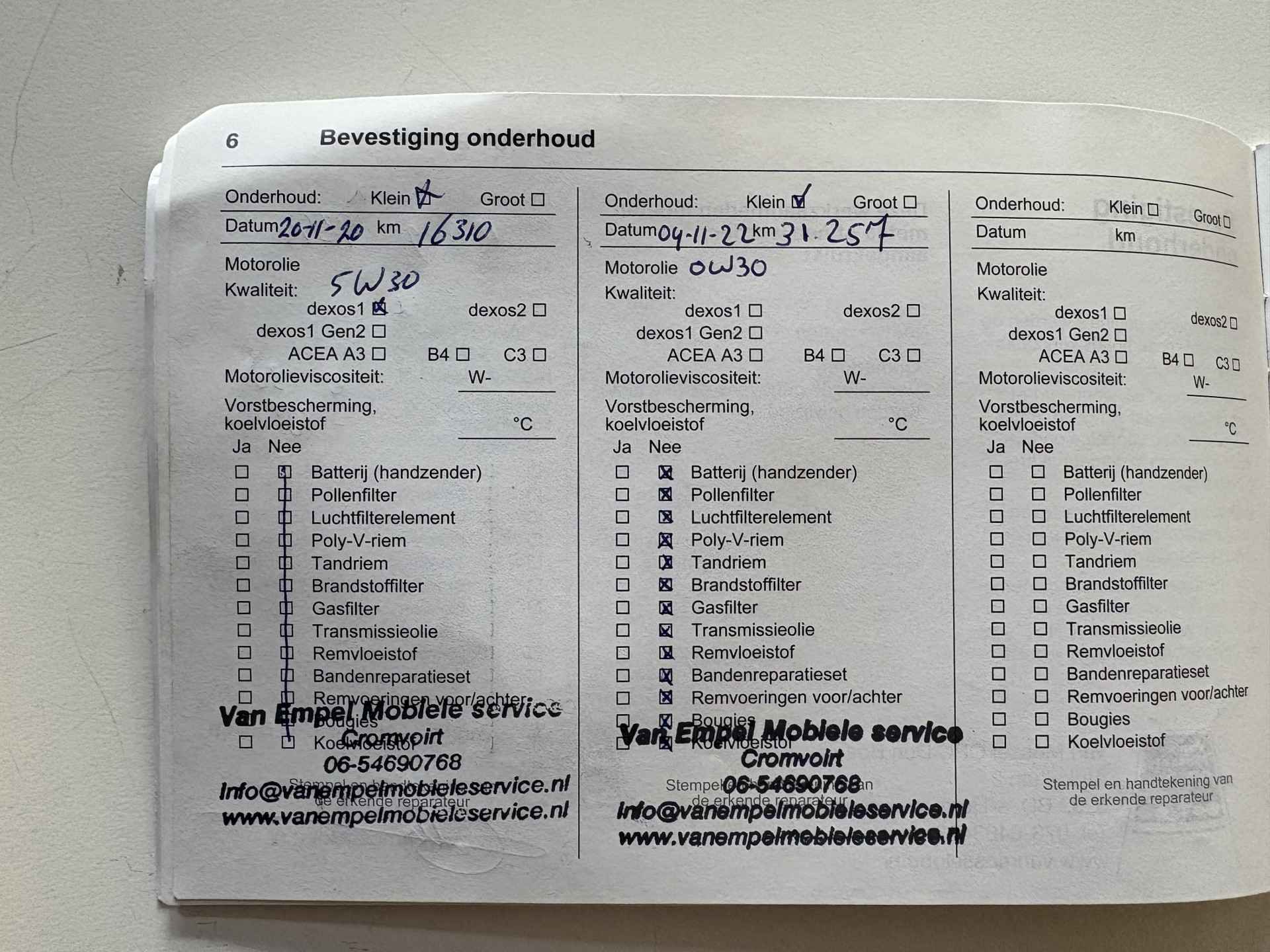 • Aflever/controlebeurt