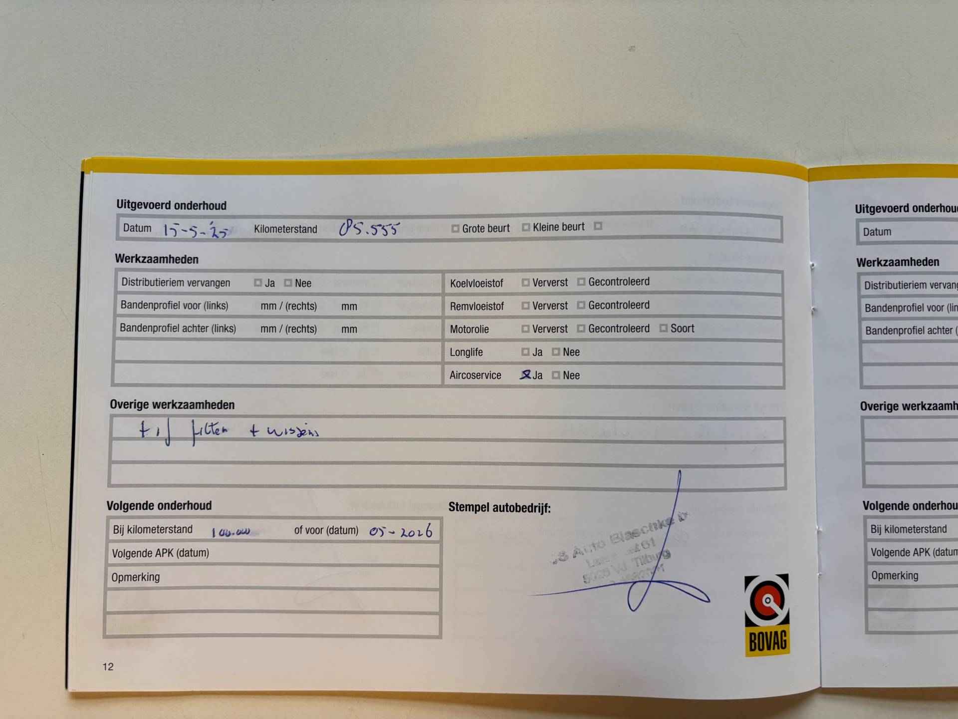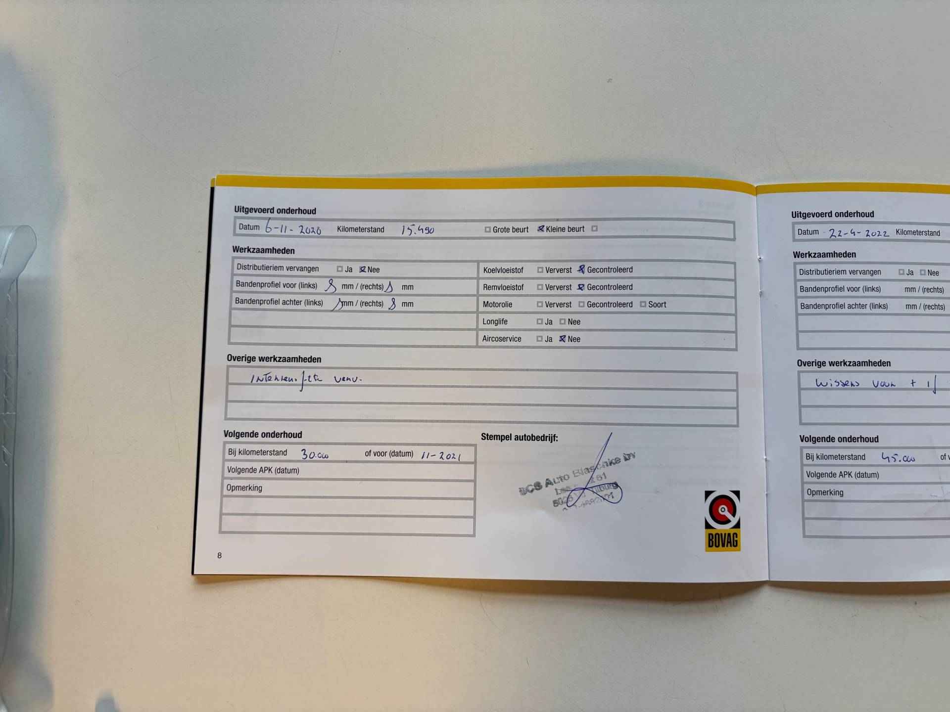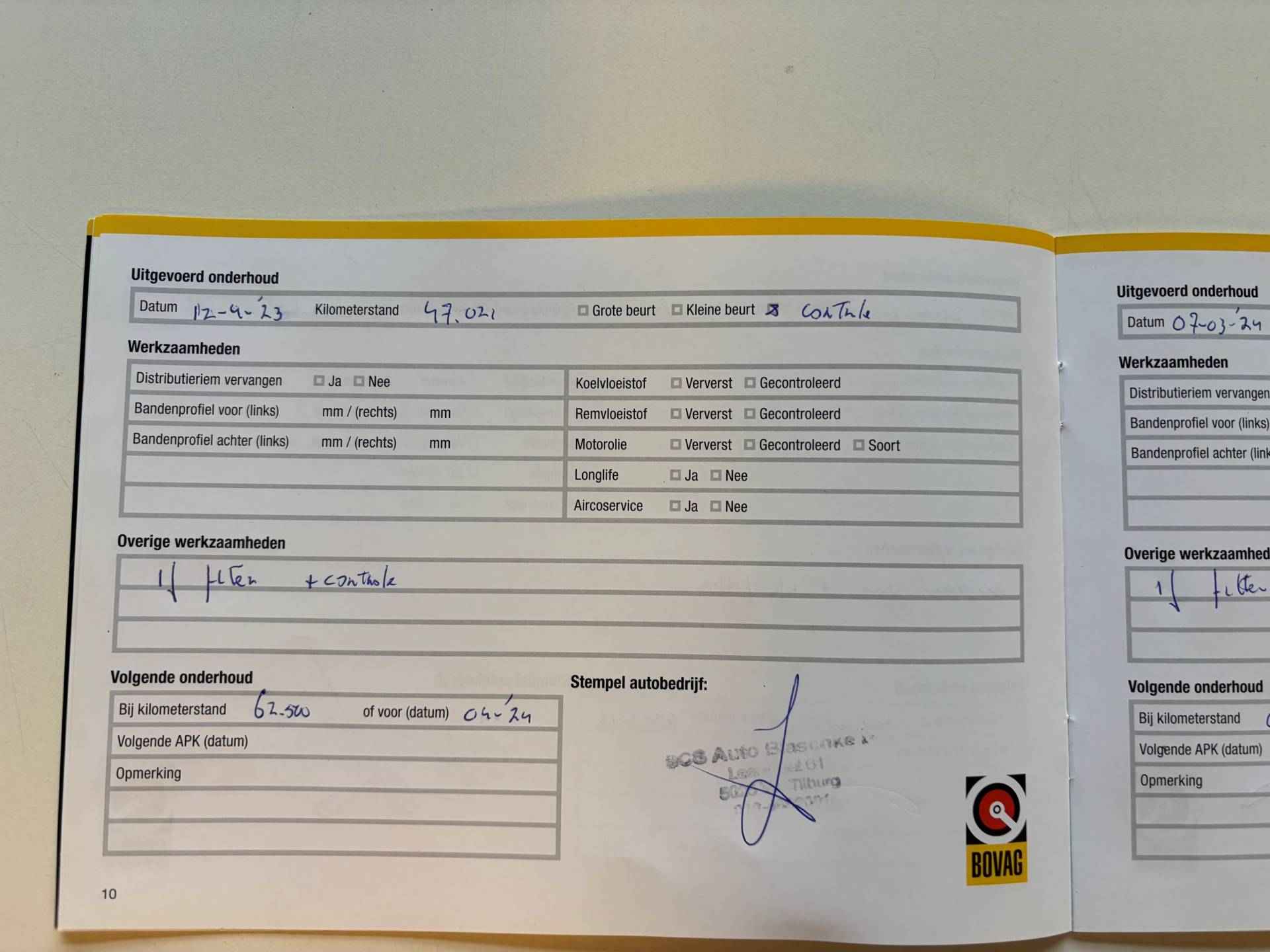 • Aflever/controlebeurt