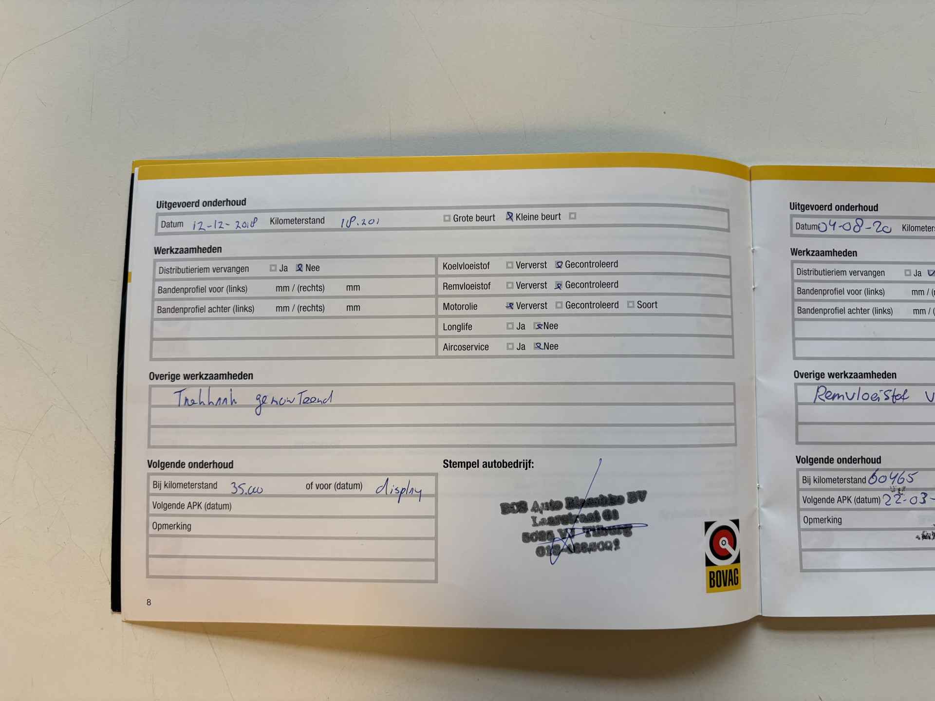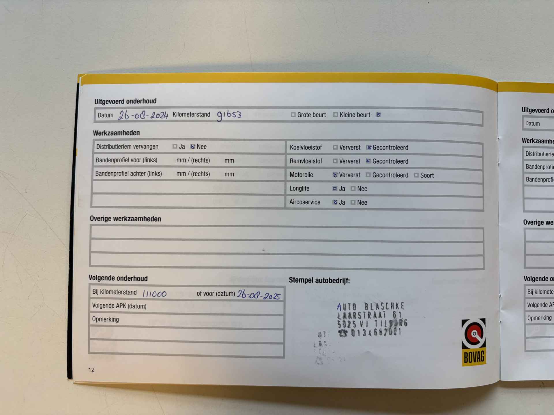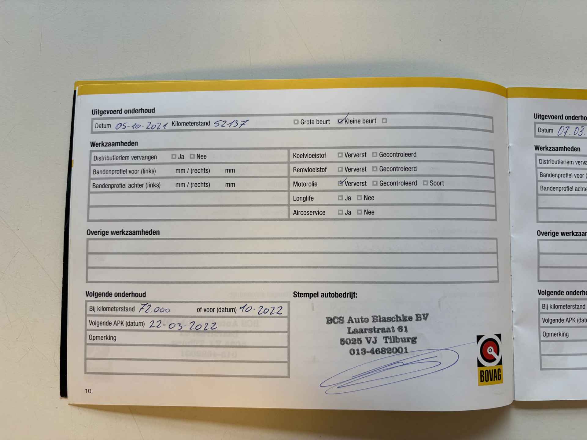 • Aflever/controlebeurt